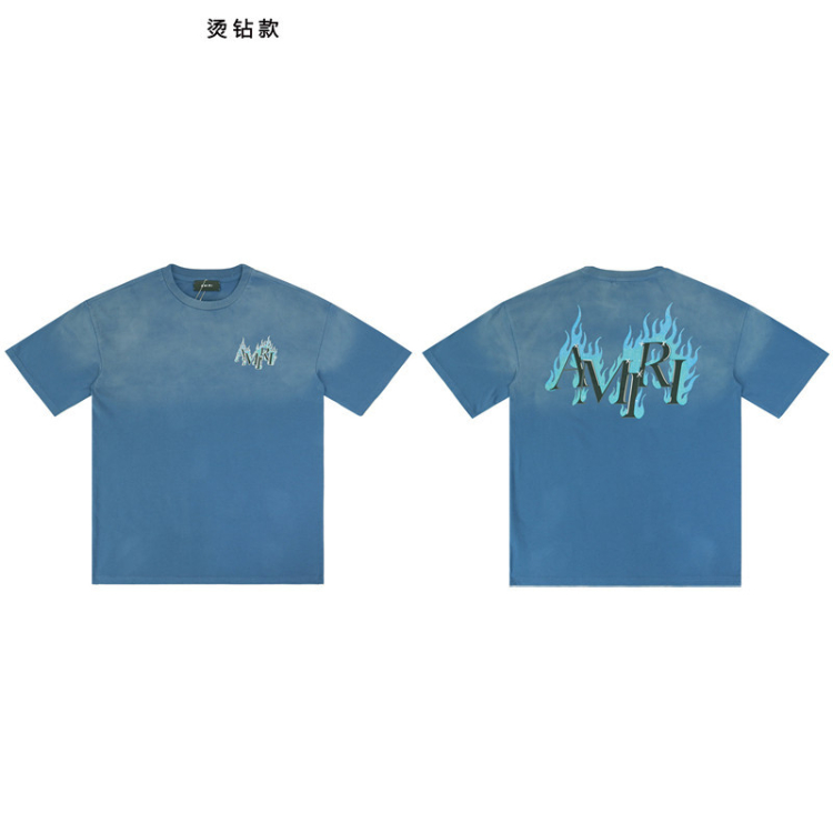 Home > AMIRI rhinestone flame letter print washed short-sleeved T-shirt-5865