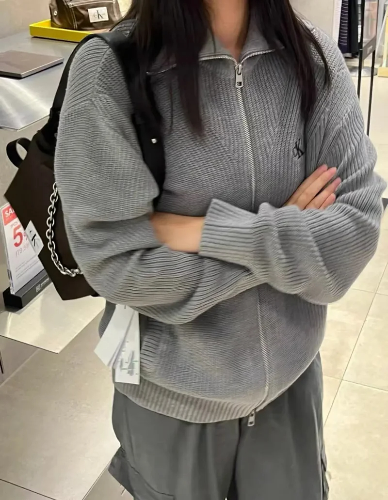 CALVIN KLEIN CK new knitted cardigan jacquard sweater button coat-4430