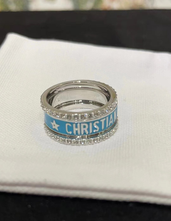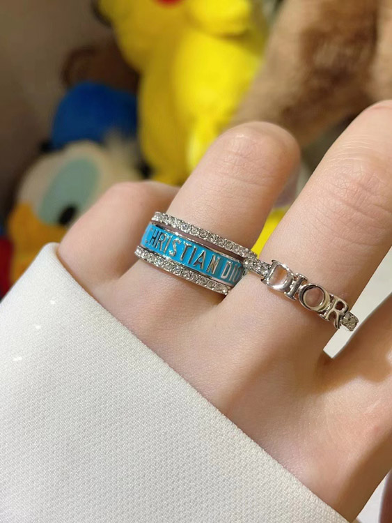 Dior gold letter blue enamel diamond ring set three-piece set-3710