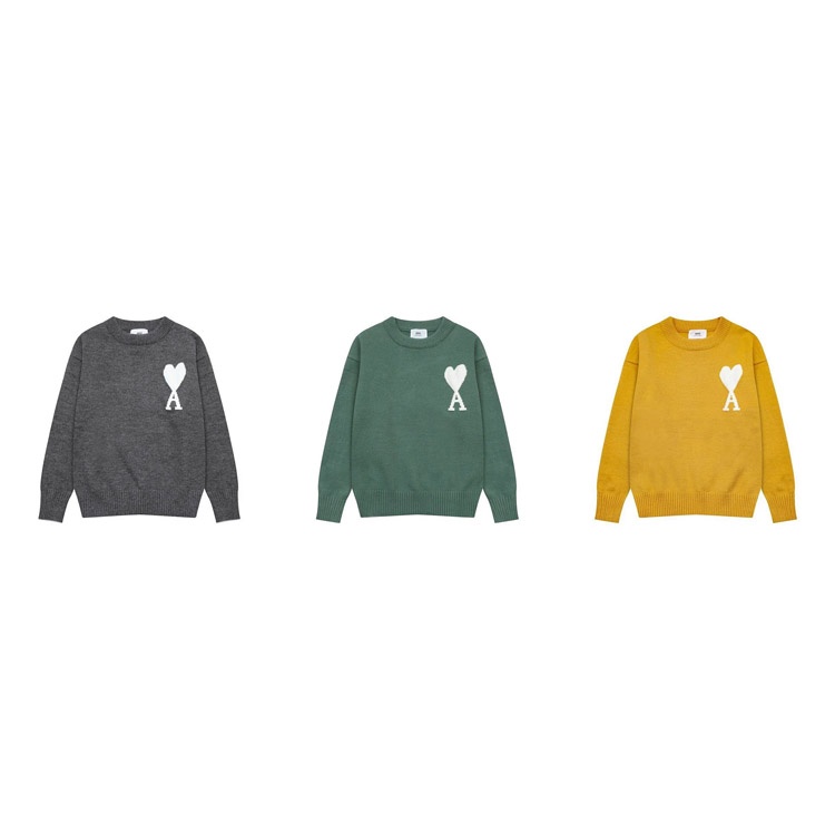 Home > AMIPARIS Big Heart White Label Wool Crew Neck Sweater-4466