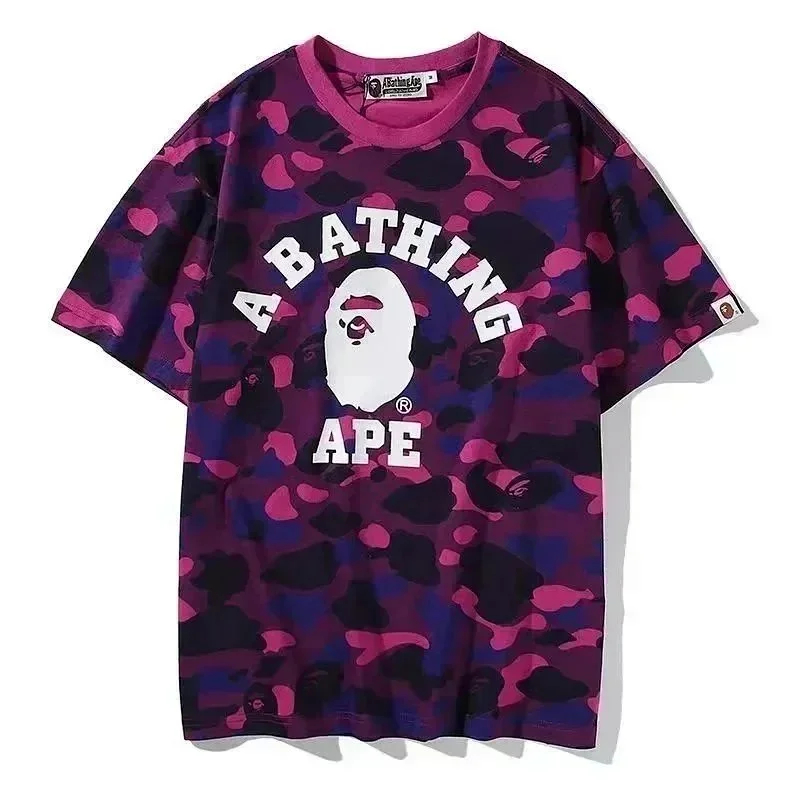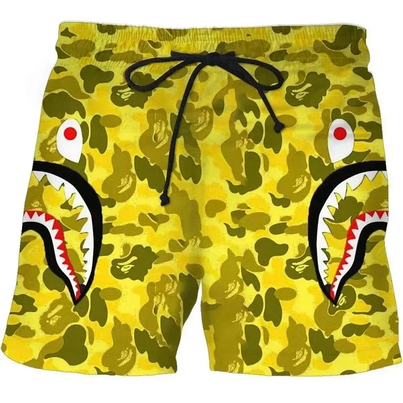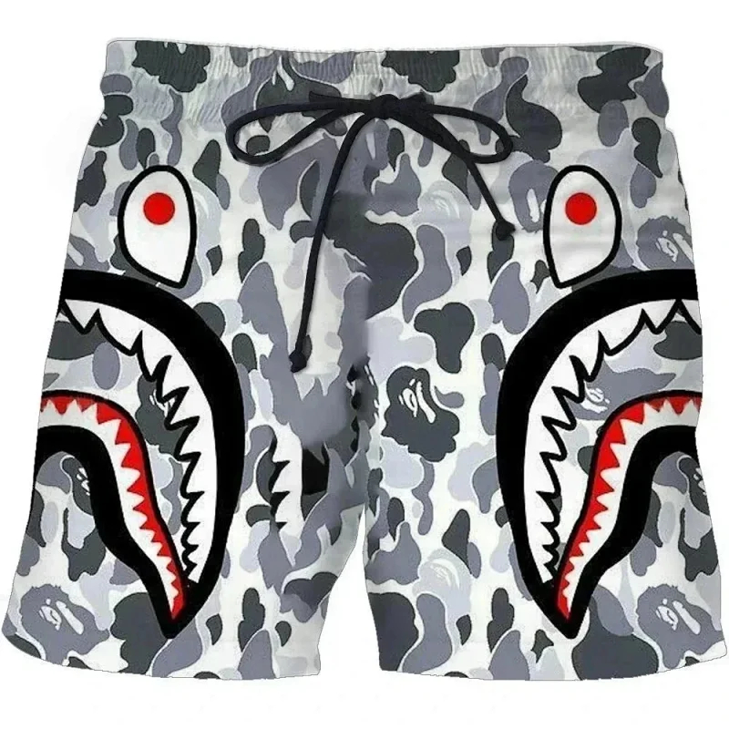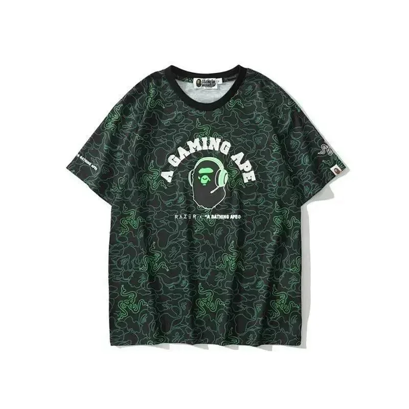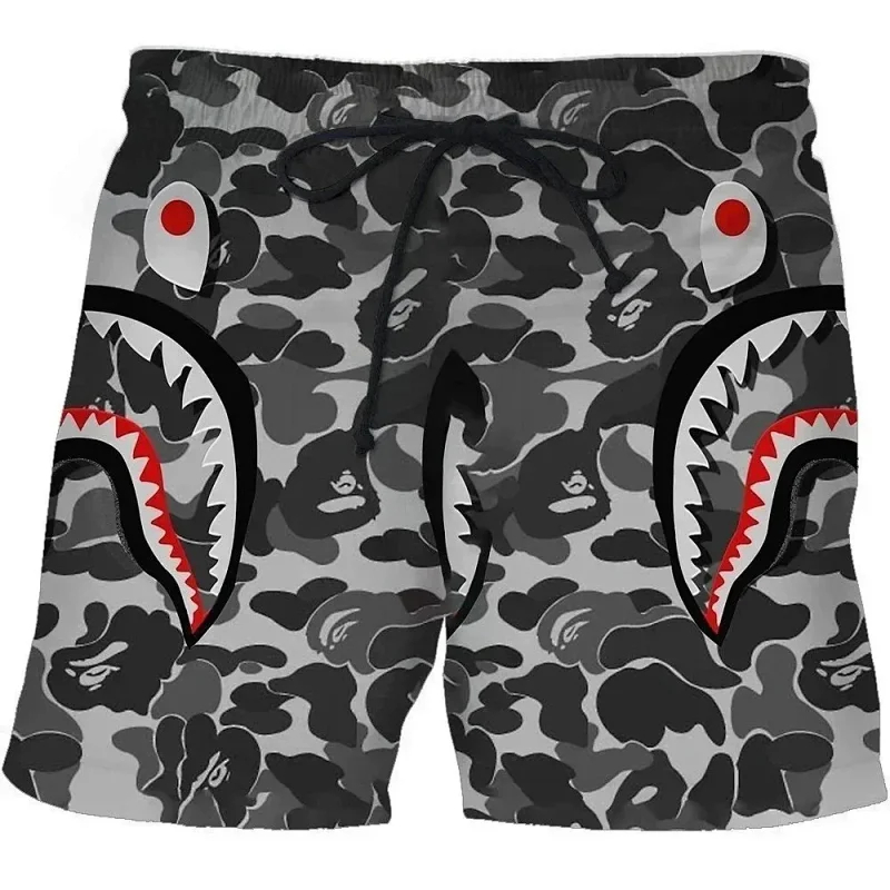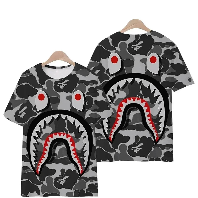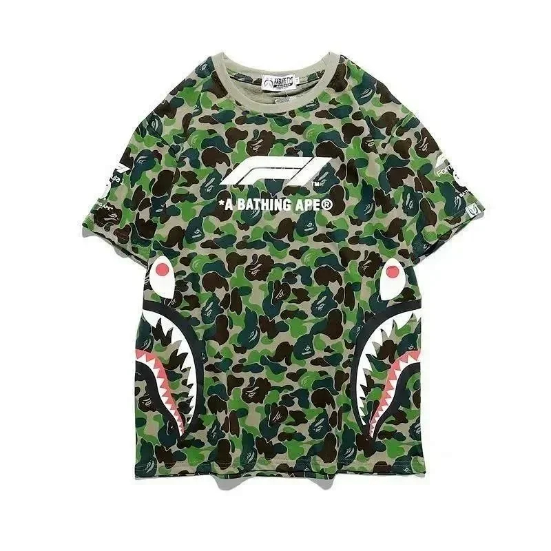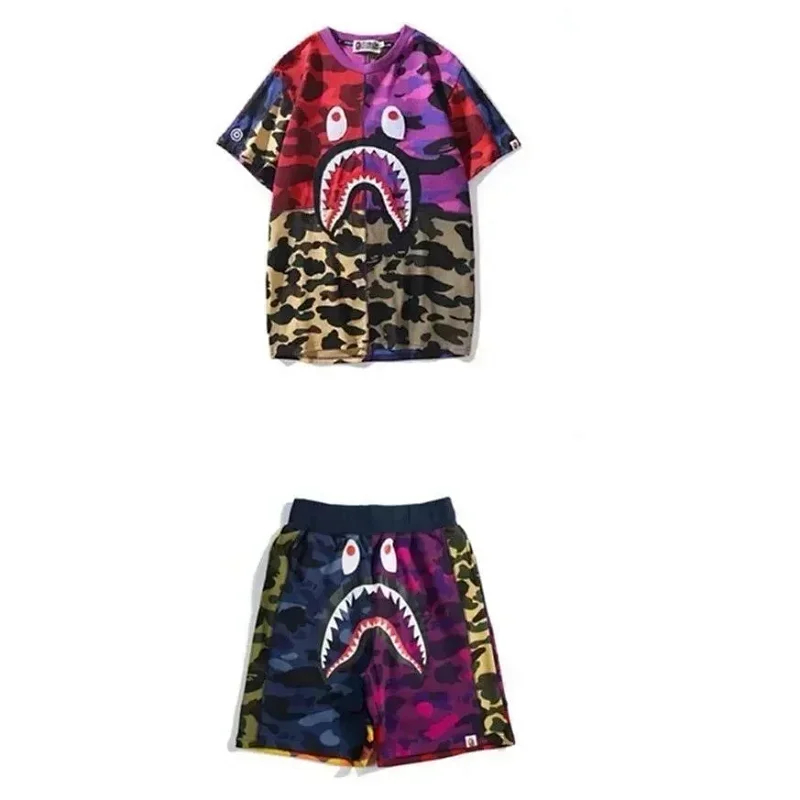 Bape shark zipper letter full print camouflage pattern short-sleeved T-shirt shorts set-2818
