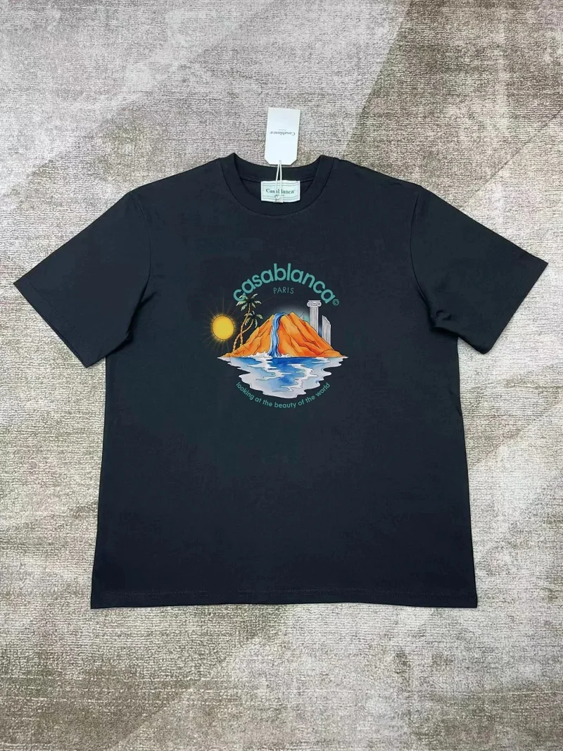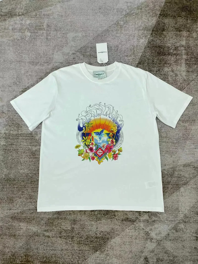 Casablanca Printed loose men's and women's short-sleeved T-shirt-2017