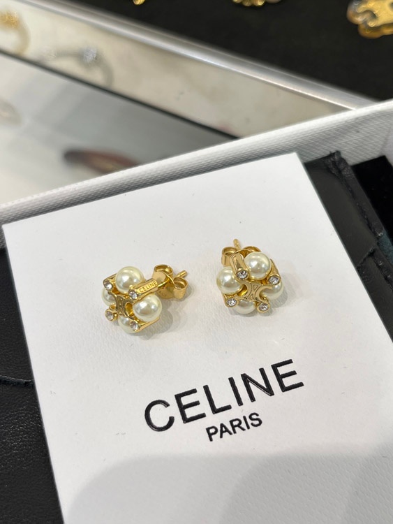 Home > Celine Pearl Gold Arc de Triomphe Earrings-3897