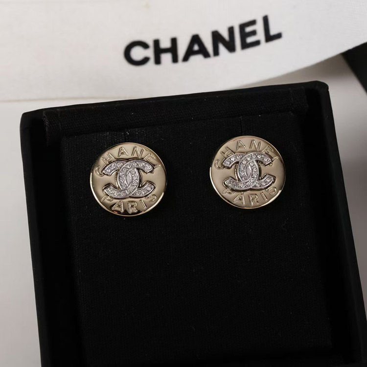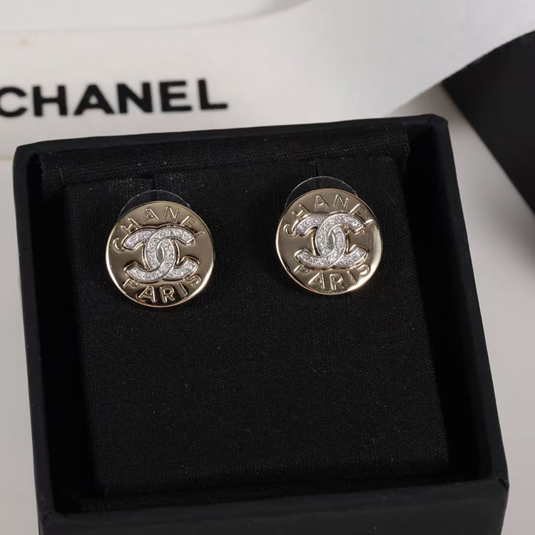 Home > Chanel gold round double c rhinestone letter gold coin earrings-3741