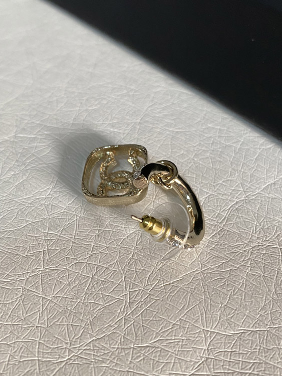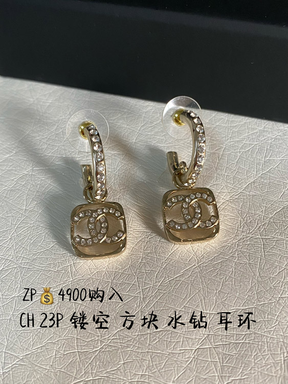 Chanel hollow rhinestone square earrings-3951