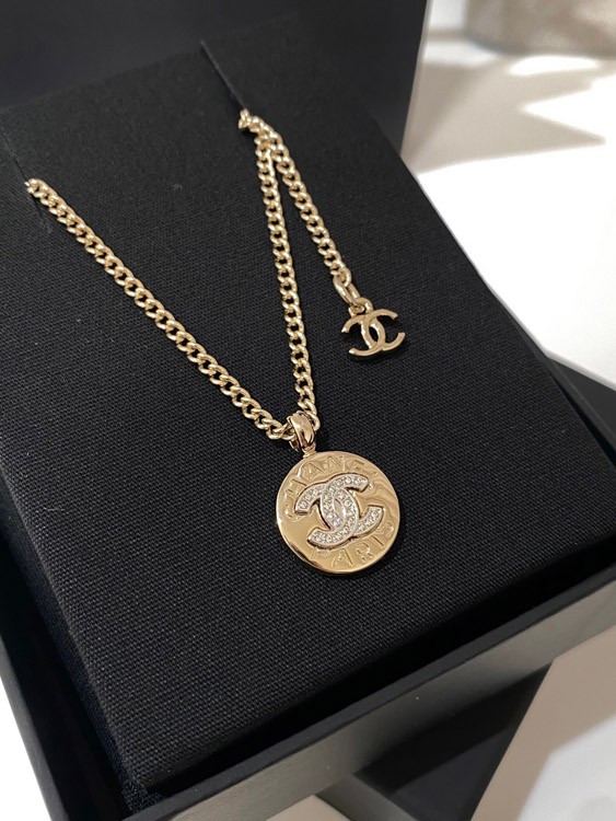 Chanel light gold gold and silver color matching round necklace-3593