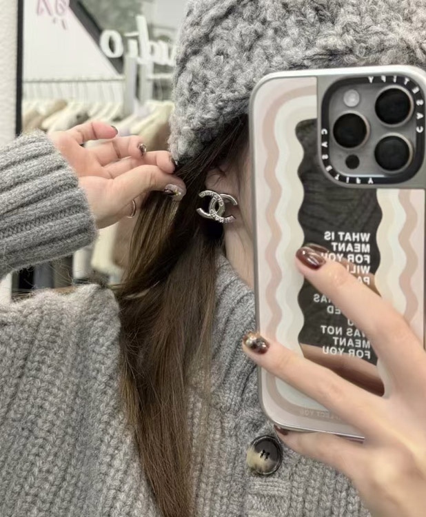 Home > Chanel White Enamel Double C Silver Earrings-3743