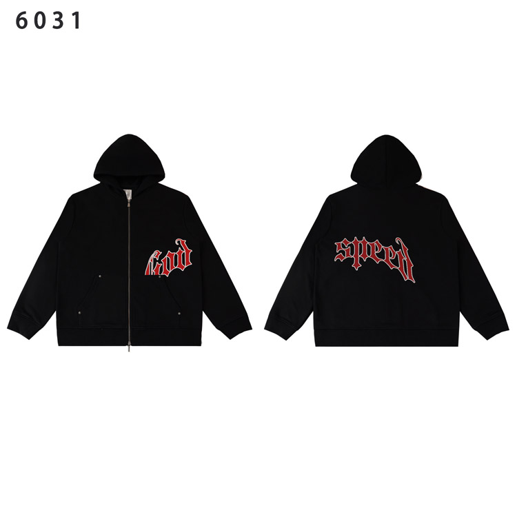 GODSPEED American Streetwear Simple Letter Cardigan Hooded Set-4556