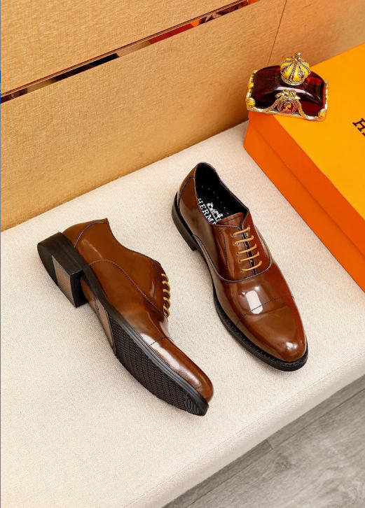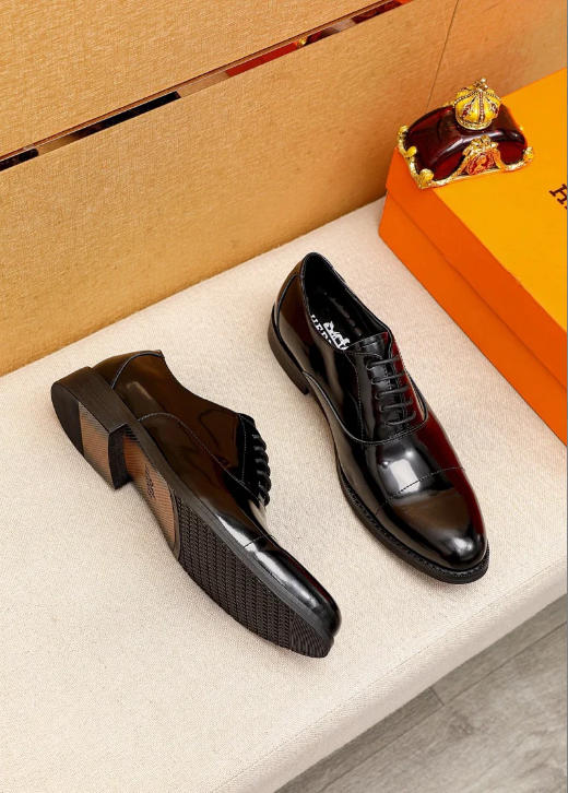 Hermès new classic calfskin lace-up business shoes-5507