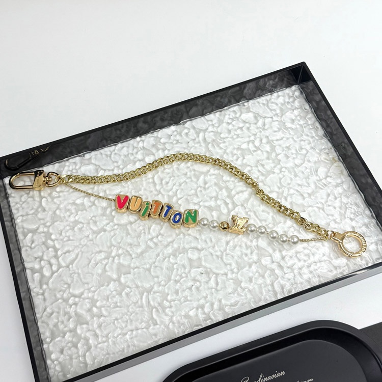 Louis Vuitton LV double chain bead pendant letter gold-decorated belt chain and bag decoration short version-3561