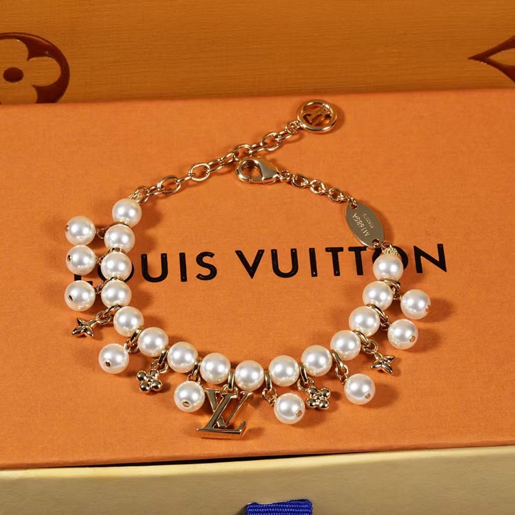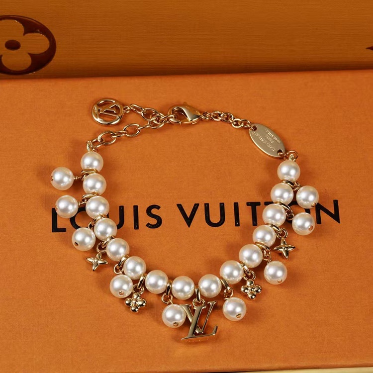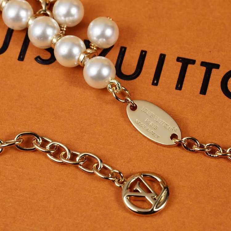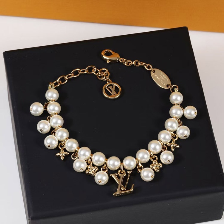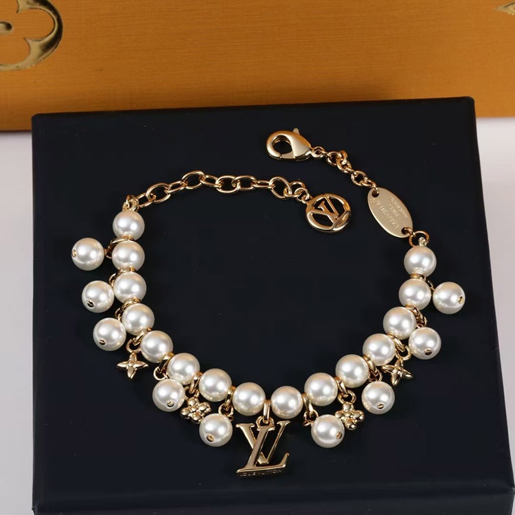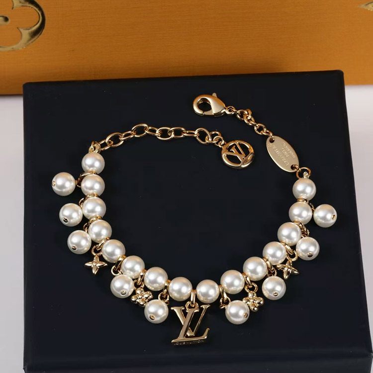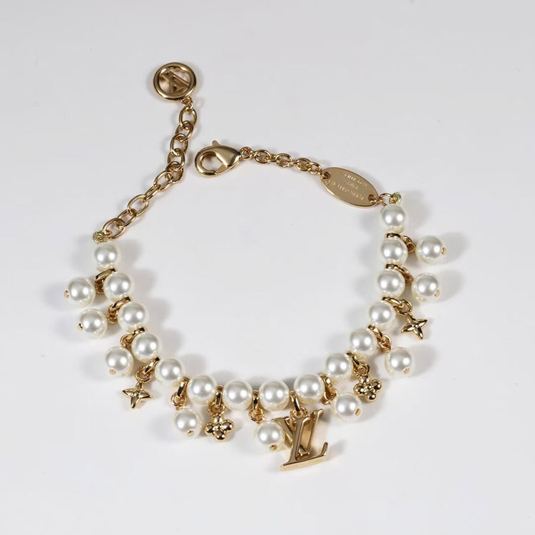 Home > Louis Vuitton LV gold metal fine chain pearl letter flower pendant bracelet-3655