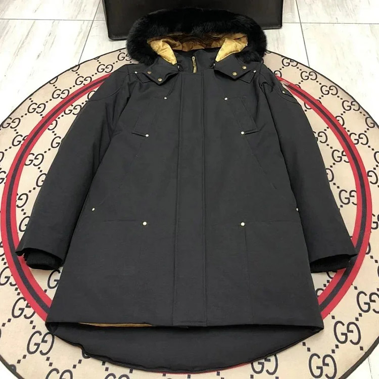 Moose Knuckles Hooded Logo Casual Mid-Length Down Jacket-4302