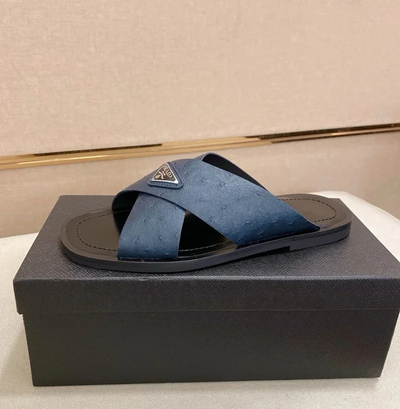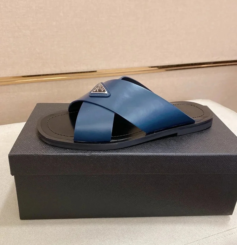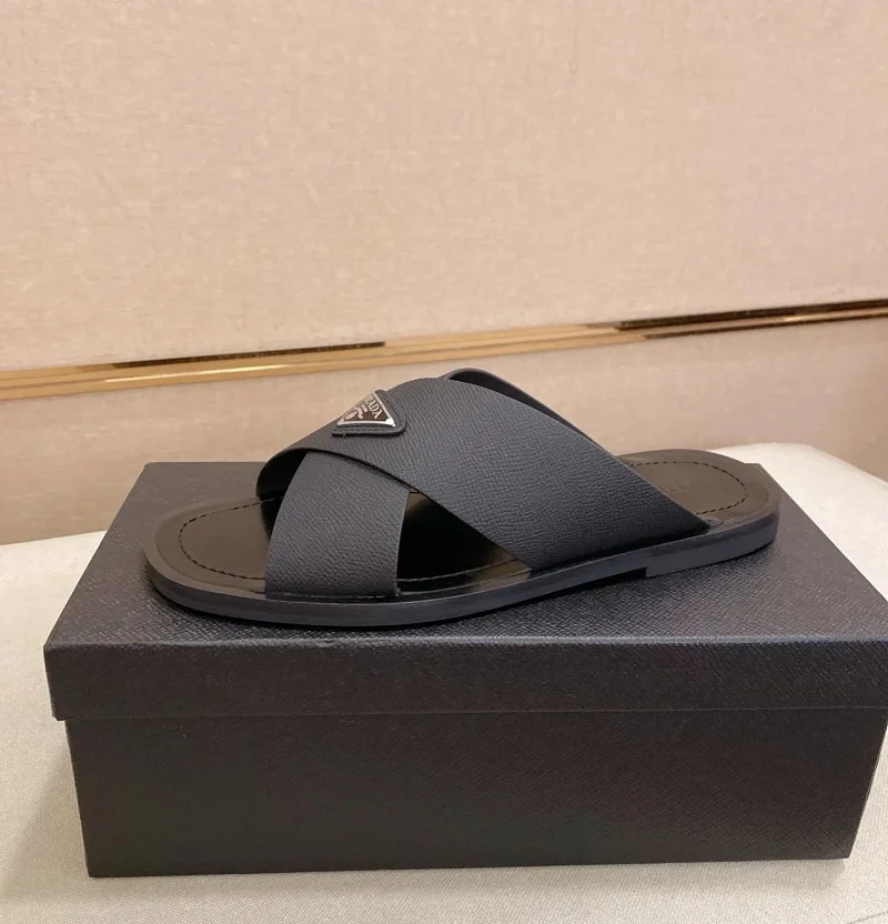 Prada Ultralight Breathable Leather Cross Slippers-5553