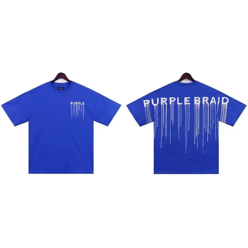 Puerple letter dripping print short-sleeved T-shirt for men and women loose cotton-1801