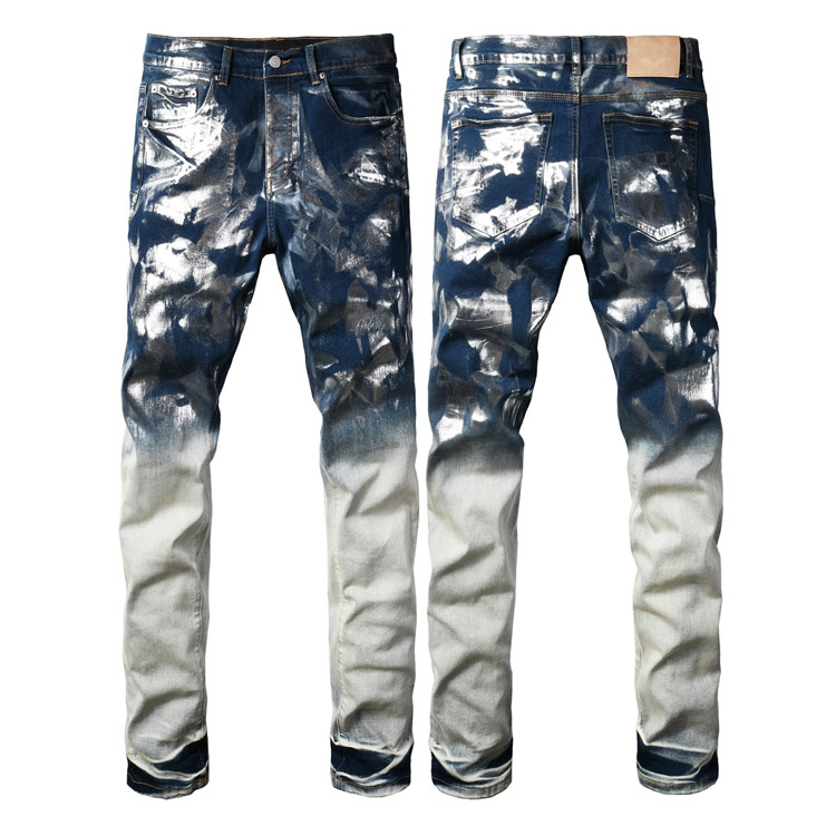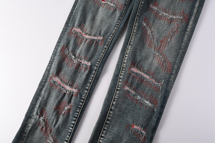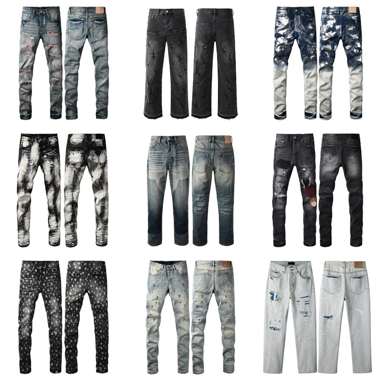 Home > Purple Brand new embroidered slim-fit ripped print stretch jeans-4250