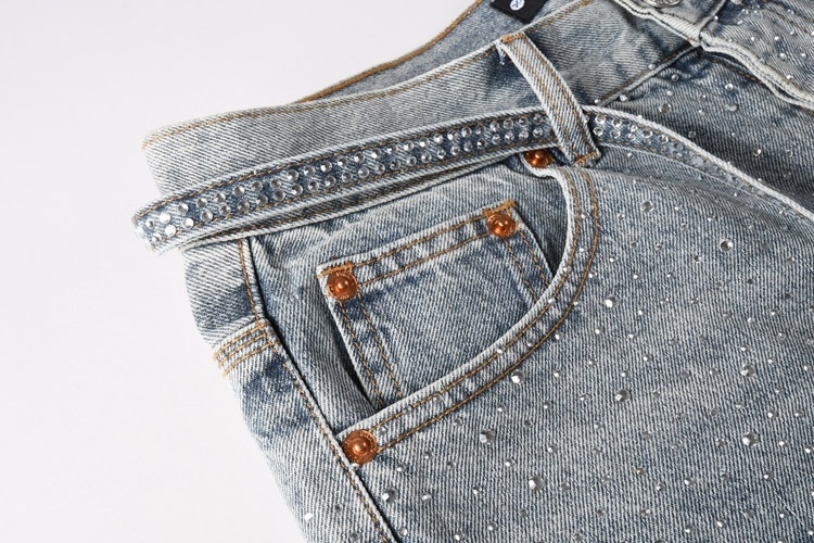 Purple Brand new hot diamond denim retro shorts washed shorts straight-4254