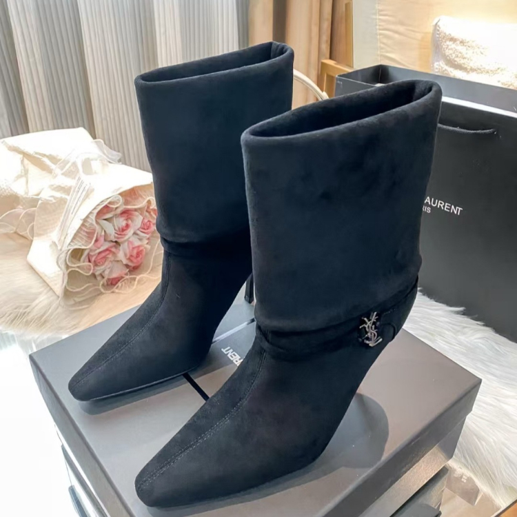 Yves Saint Laurent YSL new style stiletto heel fold-over mid-calf boots-5727